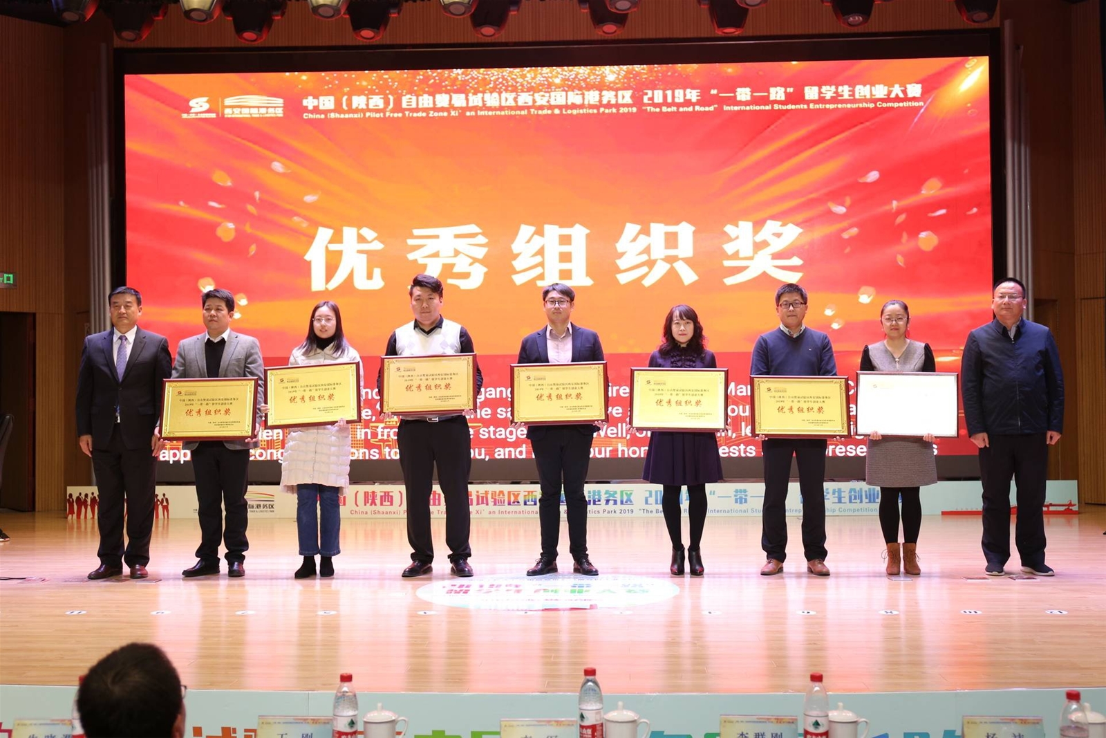 12月8日,中国(陕西)自由贸易试验区西安国际港务区首届“一带一路”留学生创新创业大赛决赛暨颁奖典礼在西安国际港务区举行。陈军斌副校长作为特邀嘉宾出席典礼并为大赛“最佳指导教师奖”获得者颁奖,省自贸办、省教育厅、西安市委外办、西安国际港务区管委会等省市政府部门负责人以及西安交通大学、西北工业大学、陕西师范大学、长安大学、西北大学、西安科技大学、西安外国语大学及同人志