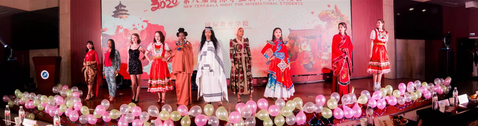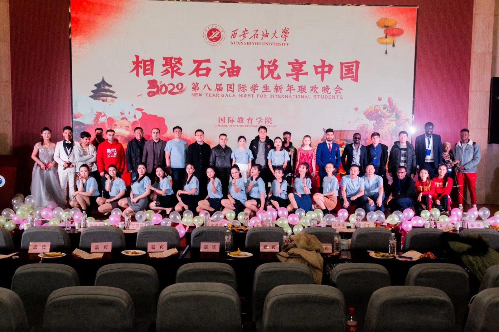 院长董皓、副院长秦璟、颜庭星及学院全体教职工、300余名留学生参加晚会。
