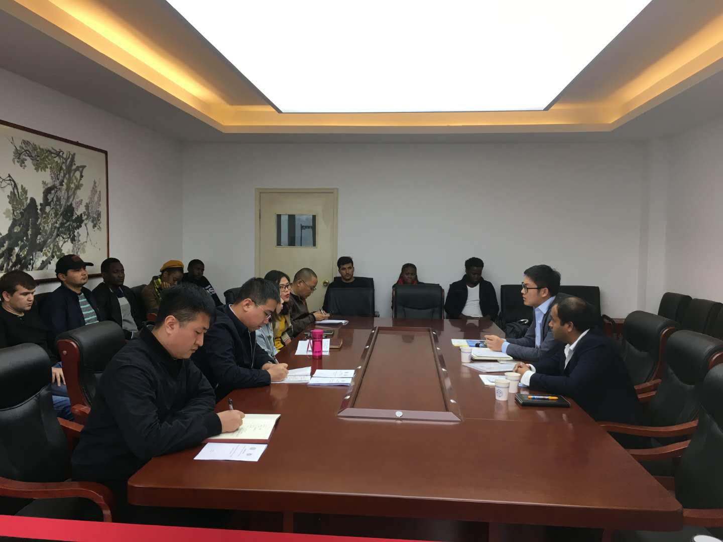双方针对本科及硕士国际学生实习实践技术要求、课程方案设置、现场环节衔接,毕业生工作技能鉴定、行业资格考试、求职推荐等方面深入交换了意见。会后,曲川经理一行就学生提出的具体实践内容、现场安排与实地实习等问题一一作了解答,并将学生的意见和建议予以记录,以便后期完善培训方案,早日开展第一批实习实践活动。