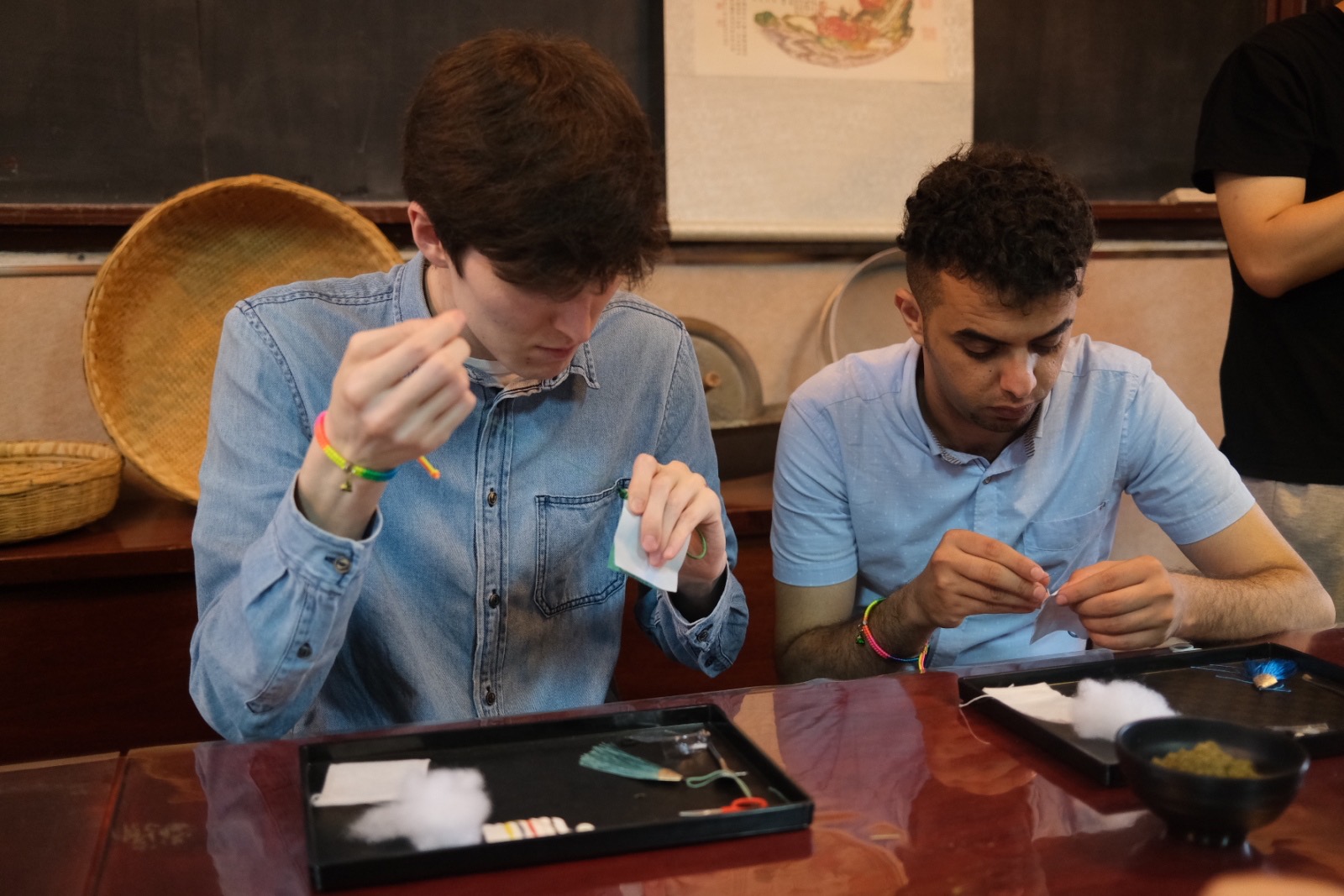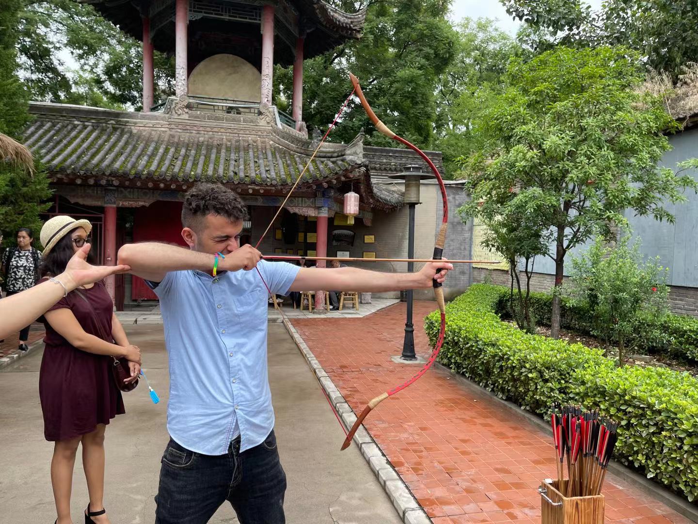下午,一行人来到关中书院进行文化体验活动,现场感受认知中国古代建筑艺术、诗词书画及儒家传统文化、体验茶艺、中医等国粹、同时学生还学习缝制香包、射箭、功夫茶等,全方位地感受了中国文化的魅力。