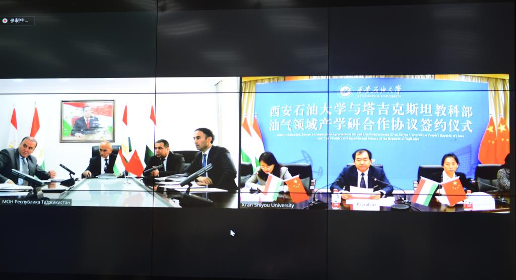 在雁塔校区学术会议中心第二会议室举行了与塔吉克斯坦教科部油气领域产学研合作协议视频签约仪式。塔吉克斯坦共和国教科部部长赛大利、同人志