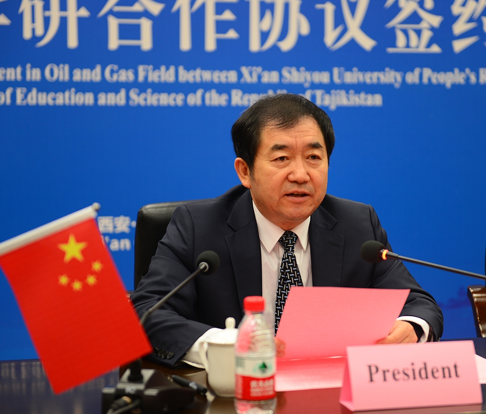 校长李天太与塔吉克斯坦教科部部长赛大利(Muhammadyusuf Imomzoda Saidali)代表合作双方共同签署油气领域产学研合作协议。