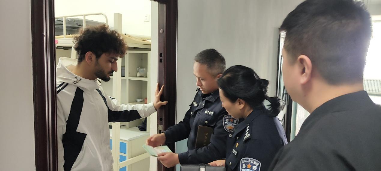 常队长一行还走访、抽查了部分学生宿舍并与部分国际学生进行交流,征求他们对出入境管理工作的意见,并抽查了国际学生签证。