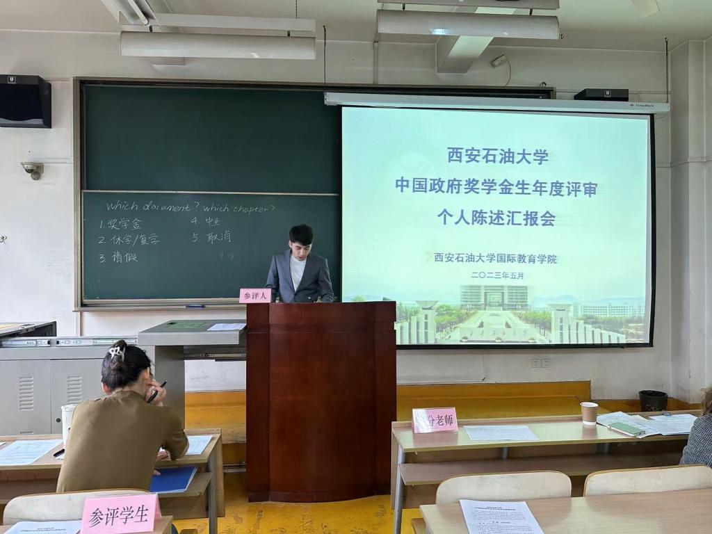 2023年度中国政府奖学金生年度评审留学生个人陈述汇报会在雁塔校区东方石油楼807教室举行。