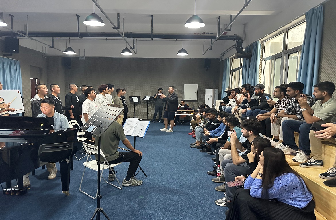国际学生热情地加入了华阴老腔合唱,在原滋原味的秦风秦韵里,同学们陶醉在古老的三秦古乐中。