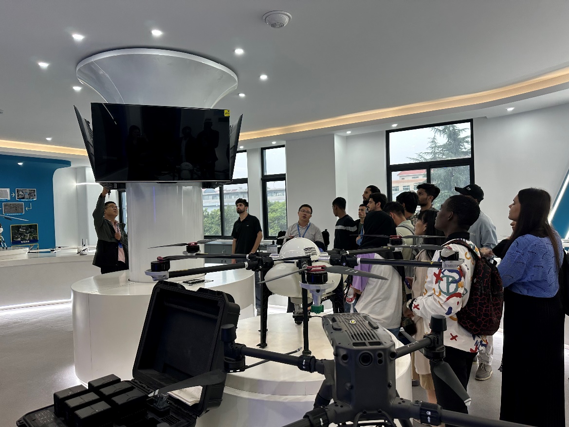 接着同学们观看了无人机展厅和航模表演。各式各样、琳琅满目、用途各异的先进中国无人机给了国际学生们巨大的科技震撼。最后同学们还在模拟器上体验了无人机操控。