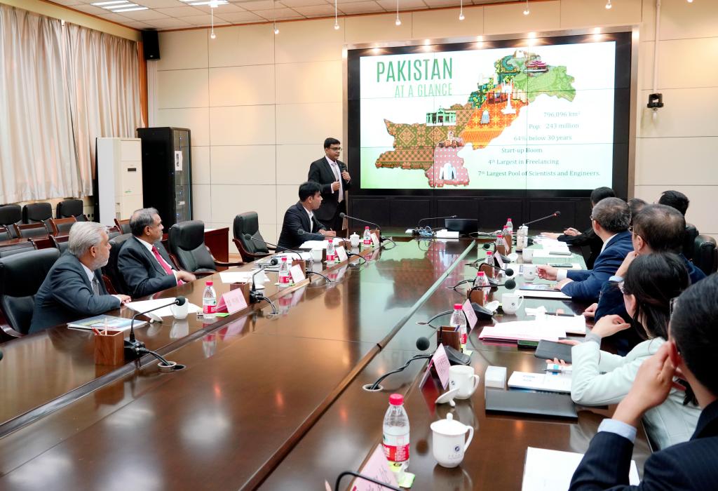 负责人对学校发展历史、学科专业、人才培养、对外交流、成果转化、校地合作等方面情况作了全面介绍。巴基斯坦国立科技大学教务处负责人对该校全球排名、专业特色、科技园区建设等情况作了介绍。