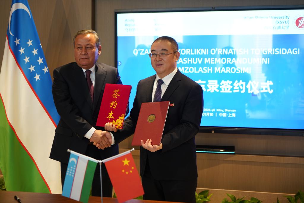 1月10日下午,校党委书记常江在上海与来华访问的乌兹别克斯坦安集延州州长阿卜杜拉赫马诺夫·舒赫拉特贝克·科沙克博耶维奇(Abdurahmanov Shuhratbek Koshaqboevich)一行会见,并签署合作备忘录。乌兹别克斯坦安集延州州政府、波士顿区政府、乌兹别克斯坦驻华大使馆投资工业与贸易部、商务参赞等乌方官员,以及同人志