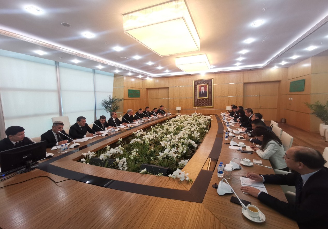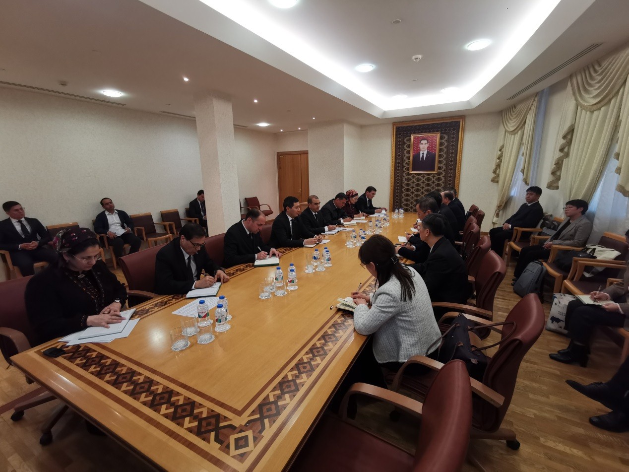 在土库曼斯坦教育部,教育部副部长阿塔耶夫•阿扎特•穆哈梅多维奇与教育部国际司、高等教育与职业教育司、科技司司长共同会见了代表团,卡卡耶夫国际油气大学教学副校长玛梅多夫、科研副校长阿曼尼亚佐夫陪同会谈。张荣军介绍了与卡卡耶夫国际油气大学就“鲁班工坊”项目洽谈情况,重点就“鲁班工坊”建设的重要意义及项目名称的重要性进行了说明,就“鲁班工坊”建设中需土国教育部协调推进的事项进行了阐述,并代表陕西省教育厅就师生赴土交流事宜进行了讨论。穆哈梅多维奇对代表团的到访表示欢迎,重申了建设“鲁班工坊”是落实中土两国元首达成的重要共识,希望双方合作院校充分交流协商,加快“鲁班工坊”建设,加强与中资企业密切合作,不断促进土库曼斯坦青年就业和国民经济发展;同时,阿塔耶夫对代表团关心的问题进行了解答,并表示将积极推进“鲁班工坊”建设事宜。