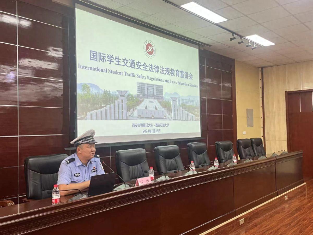 为进一步增强高校师生的道路交通安全意识和自我防范能力,有效预防和减少校园周边道路交通事故的发生。5月15日下午,西安公安交警雁塔大队巨雷同志受邀走进石油大学,为该校同人志