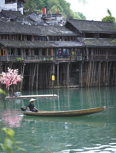 湖南湘西土家族苗族自治州凤凰古城的吊脚楼沿沱江而建,鳞次栉比,错落有致。古色古香的建筑通风防潮,避暑御寒,极具工艺审美和文物研究价值。图为凤凰古城吊脚楼一瞥。 俄罗斯籍游客 鲁德姆·塔季娅娜摄 “还记得我第一次到凤凰古城时,吊脚楼、虹桥等古朴精美的特色古建筑与山水融为一体,让我叹为观止,流连忘返。” |