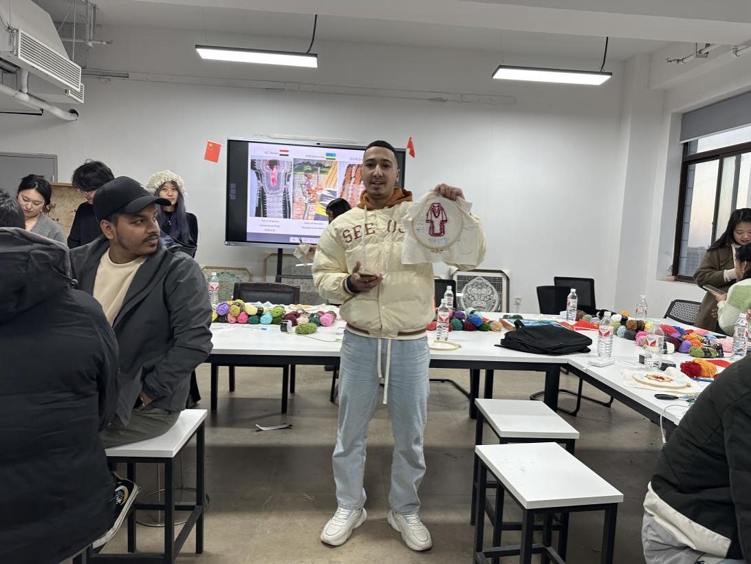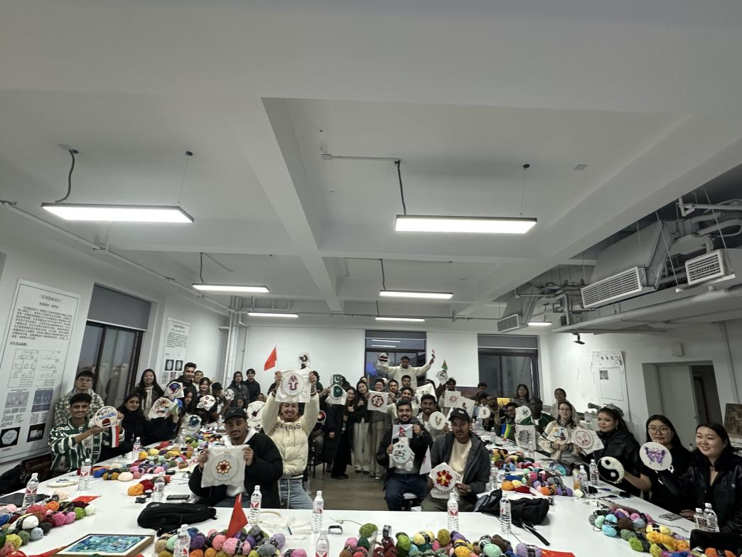 活动结束后,中外学生代表分别分享了自己的绘制体验和创作心得,结合对墩绣传统手工艺的理解讲述自身对中华传统手工艺的认识。