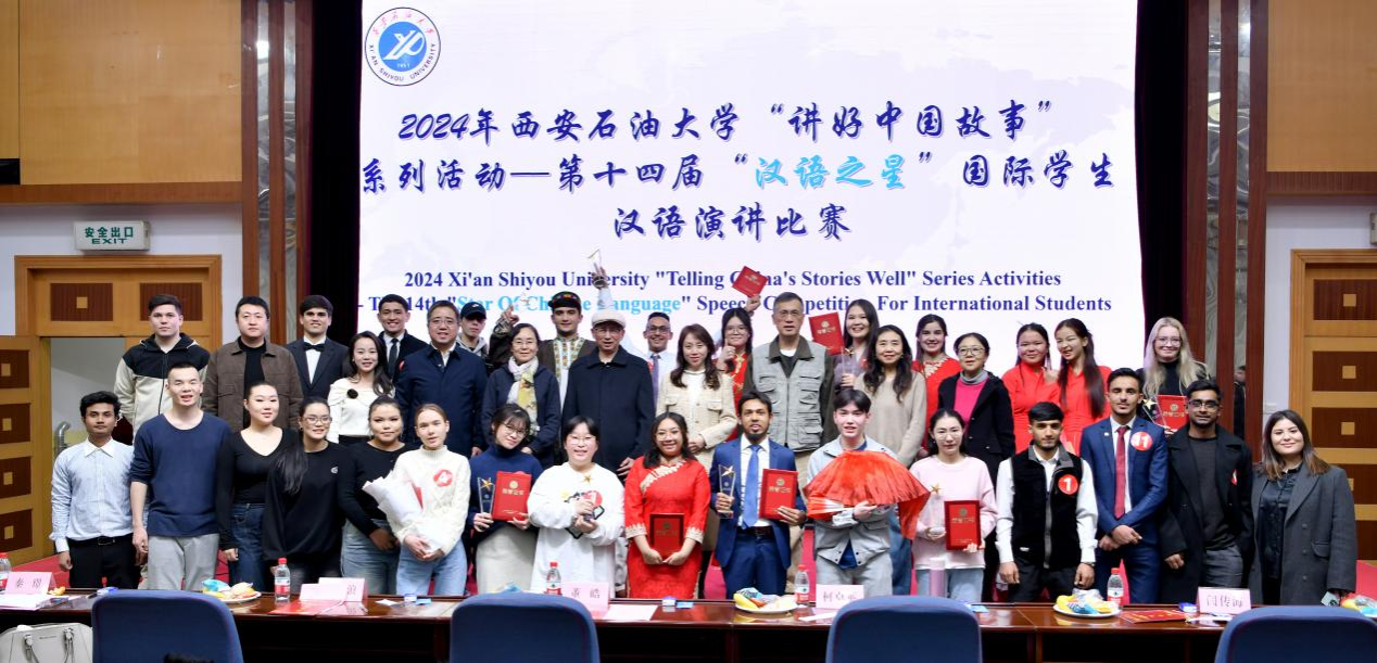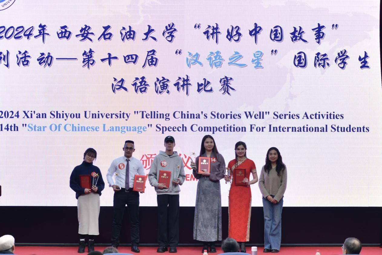 在雁塔校区学术报告厅举办2024年“讲好中国故事”系列活动——第十四届“汉语之星”国际学生汉语演讲比赛。学院领导、特邀评委、汉语教师代表、国际学生工作办公室工作人员以及来自“一带一路”沿线13个国家18组国际学生参加。