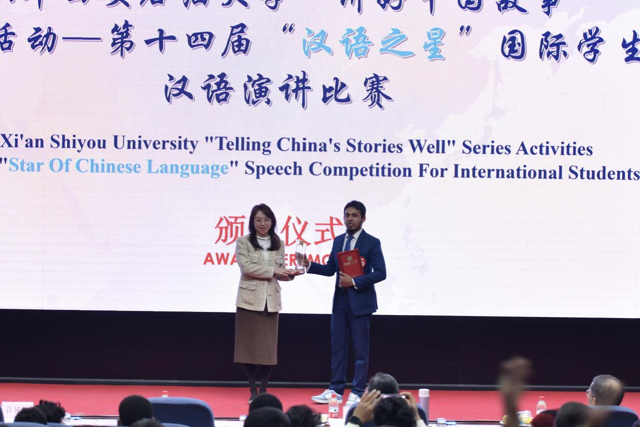 经过激烈的角逐,来自孟加拉国的哈桑同学凭借其出色的演讲内容和表现,荣获一等奖。申李平安、简爱克、伊卡三名同学获得二等奖,韩沐恩、曾美丽、七人组合、月亮及拉德蒙五组选手获得了三等奖。学院院长董皓、副院长秦璟及特邀评委代表许延浪教授分别为获奖选手颁发了奖杯和获奖证书。特邀评委代表柯卓英教授对比赛进行了总结点评。
