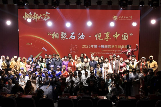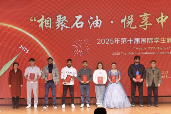 在鄠邑校区弘石报告厅成功举办“相聚石油・悦享中国”2025年第十届国际学生新年晚会。学校鄠邑校区管理办公室主任黄建礼、学生工作处副处长毕轶慧、校友工作与合作交流处副处长孙会珠、公安鄠邑分局出入境大队常虹及沣京路派出所民警代表莅临现场。学院院长董皓致辞,副院长颜庭星、黄恺,国际学生工作办公室全体干部及400余名中外学生观看。