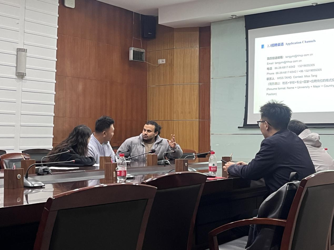 邀请东方电气集团四川宏华国际科贸公司来校举办来华留学生专场招聘会,会议在雁塔校区会议中心第四会议室举行。宏华国际科贸公司副总经理黄仁伟、组织人事部主任彭魁、营销经理李文轩、人力资源经理唐英明,国际教育学院副院长黄恺、国际学生工作办公室主任韩旭、学院全体辅导员以及50余名应届毕业留学生参加。