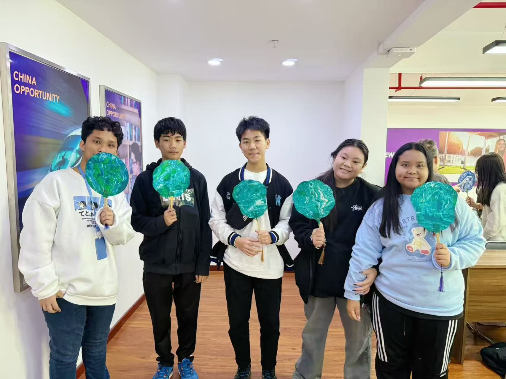 在中国漆扇制作体验课程中,泰国学生亲手制作漆扇,色彩与线条在扇面上交织,每一笔都倾注着他们对中国传统工艺的好奇与热爱。