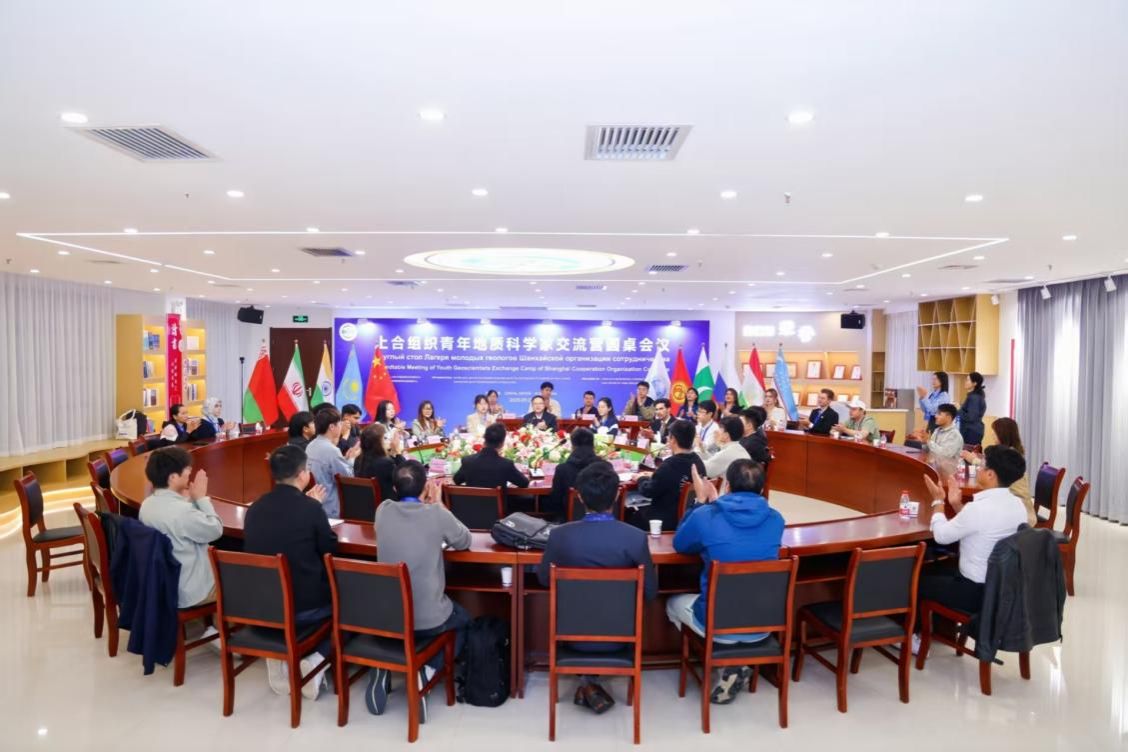 代表围绕“青年如何参与上合组织地质学方面的合作创新”议题,与各方参与代表开展圆桌会议,学生代表菲鲁丝、黛西、萨莱分别作交流发言。菲鲁丝提出以教育科研、数字技术、国际协作三大路径推进青年地学合作;黛西聚焦“三个主动”,即主动利用机会、主动解决问题、主动跨域交流给出实践建议;萨莱则从责任使命切入,强调青年需将个人成长融入区域地学发展大局。最后,爱莲娜为会议宣读俄语版《青年地质科学家倡议书》。