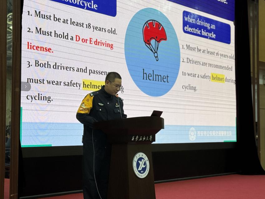 市局交管支队雁塔大队易阳警官通过剖析典型交通事故案例,生动讲解了中国的交通法规和安全出行常识。