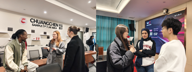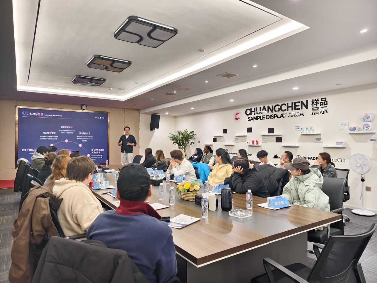 公司外籍人力资源总监刘献懿热情接待了师生一行,并带领大家全方位参观了企业办公场所与专业直播间。通过实地观摩,留学生们直观感受跨境电商的日常运营流程与内容创作场景,对跨境电商行业的工作模式建立了具象化、系统化的认知框架。