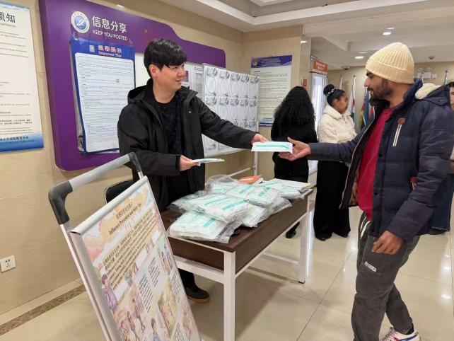 为有效应对秋冬季传染病传播风险,切实维护在校留学生健康安全,同人志 协同校医院、后勤处等单位,于11月20日至12月18日对明德校区国际学生公寓楼开展了全面的预防性环境清洁与消毒工作,并组织举办了传染病防控专题宣讲。 在环境消杀环节,后勤处专业人员严格遵守卫生消毒规范,对公寓楼道、电梯、卫生间等公共区域实施全覆盖处理,并对门把手、楼梯扶手、水龙头等高频接触表面进行彻底消毒,着力阻断病毒传播途径,为学生营造健康安全的居住环境。 学院与校医院同期组织开展防疫卫生专题宣讲。医护人员系统介绍了常见呼吸道及消化道传染病的传播特点、症状识别及日常预防方法,现场演示了如何正确佩戴口罩、科学洗手的规范步骤,并就疫苗接种、发热就诊流程等问题进行了详细解答。学院同步向留学生分发防护口罩及健康防护宣传页,并在公寓楼公共区域张贴流感预防宣传海报,进一步强化了环境提醒与实物保障,多措并举增强留学生的自我防护意识与能力。 此项工作是同人志 持续深化常态化健康管理与多部门联动防控机制的切实举措。通过强化环境治理、开展健康教育等措施,不断提升校园传染病综合防控能力,巩固校园健康安全防线,保障教育教学秩序平稳有序。学院将持续关注公共卫生动态,定期开展卫生评估与健康宣教,切实维护留学生群体的健康与校园安全稳定。 文 字:冯亦卓 图 片:冯亦卓 编 辑:韩 旭 审 核:黄 恺