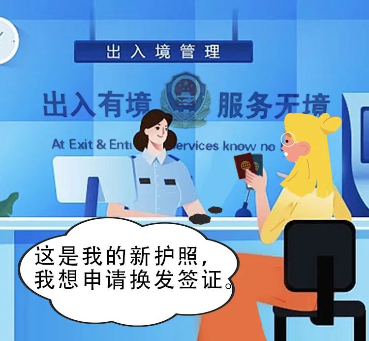 第四步:获得新护照后,请前往当地公安机关出入境管理部门申请换发签证或居留许可。