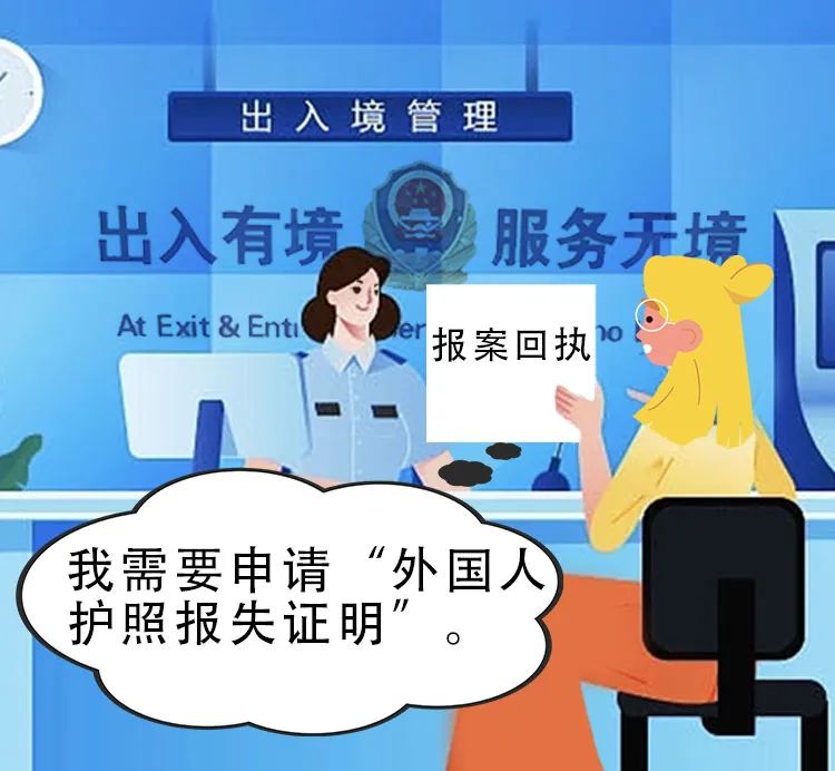 第二步:携带遗失证明回执或报案回执前往当地公安机关出入境管理部门,申请“外国人护照报失证明”。在你获得新护照及签证或居留许可前,外国人护照报失证明是你的合法身份证件。