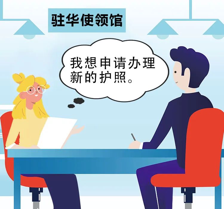 第三步:前往你本国的驻华使(领)馆,申请办理新护照。