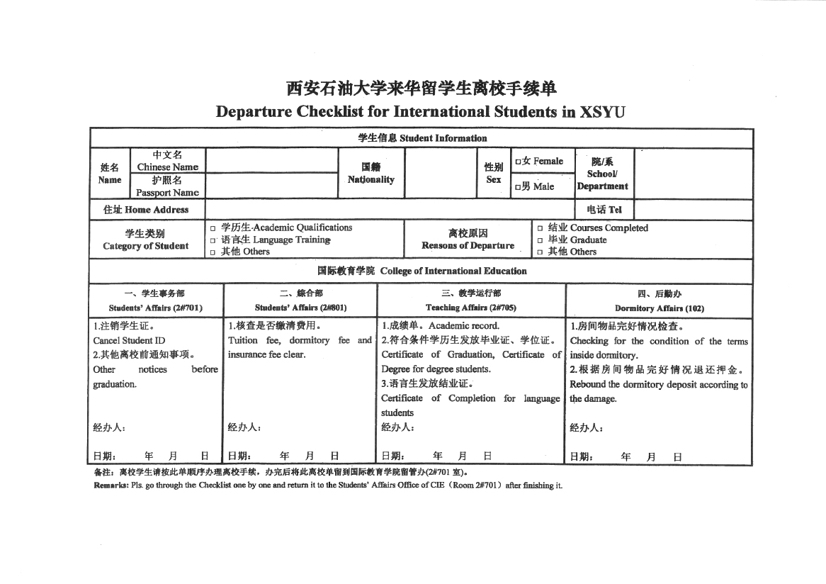 离校登记单